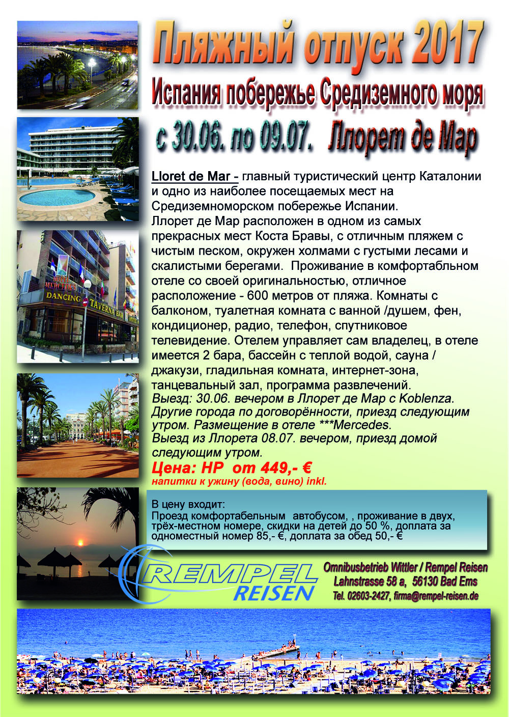 Пляжный отпуск, Испания: 30.06. - 09.07.17 !